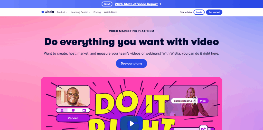 Wistia is a go-to for content marketers who want granular control and deep CRM integrations. It’s excellent for webinars, gated videos, and B2B explainer content.